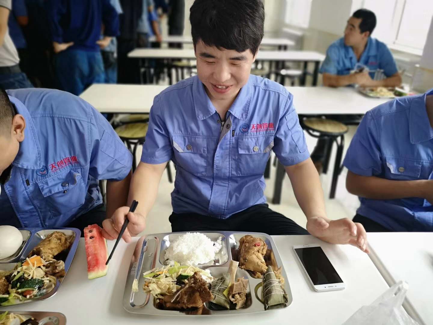 餐廳升級改造完成恰逢端午節(jié),餐廳不僅為廣大員工提供可口的飯菜,還特意送上美味的粽子和西瓜,讓大家都過上一個溫馨的端午佳節(jié)!